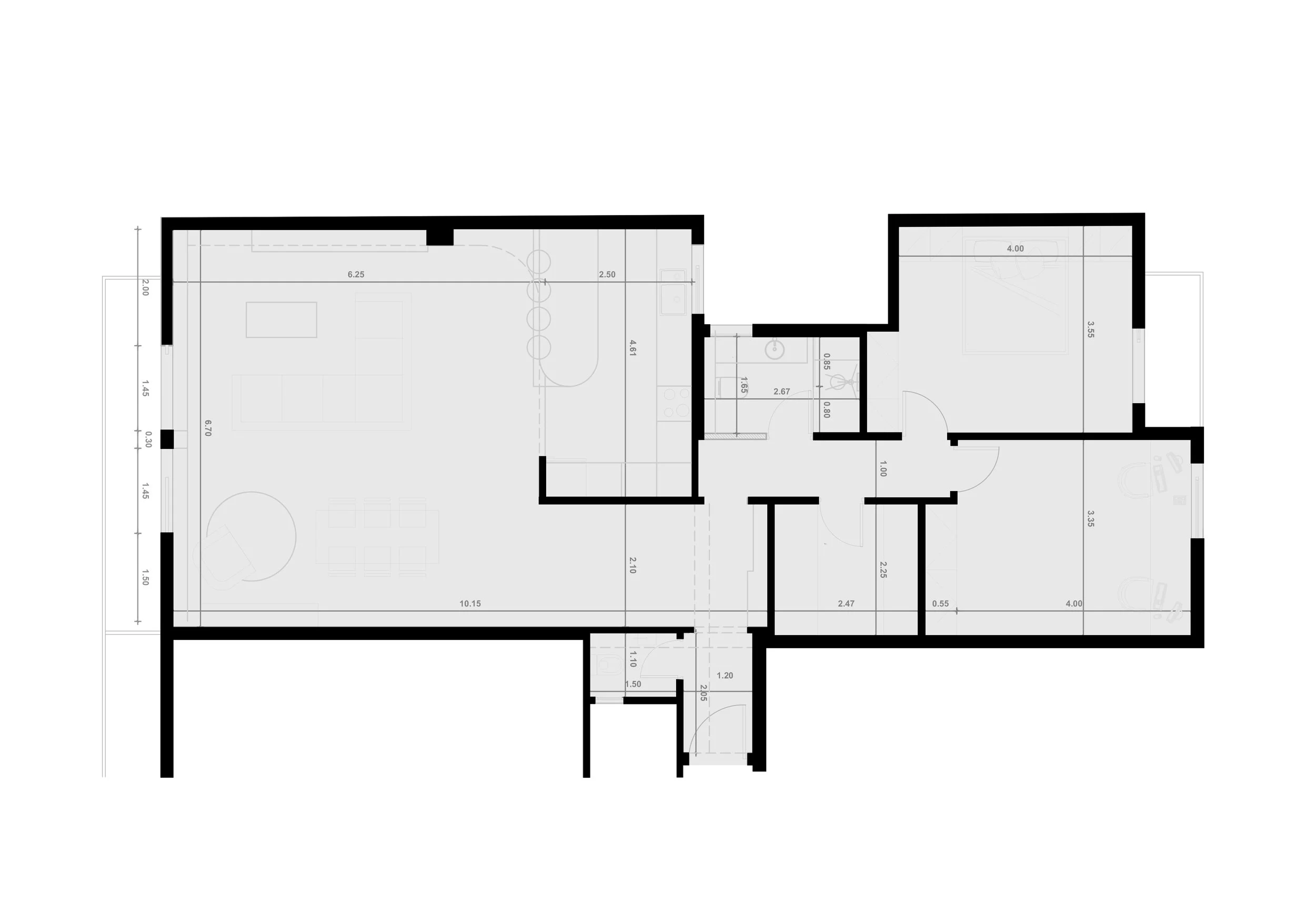 The renovation was shaped to a large extent by the owners’ refined aesthetic sensibility and their careful attention to detail, expressed both during personal design discussions and throughout the construction process. Their appreciation for contemporary yet timeless design informed the creation of a space where architecture is perceived as a quiet continuum, subtly connecting rooms and details across the apartment.